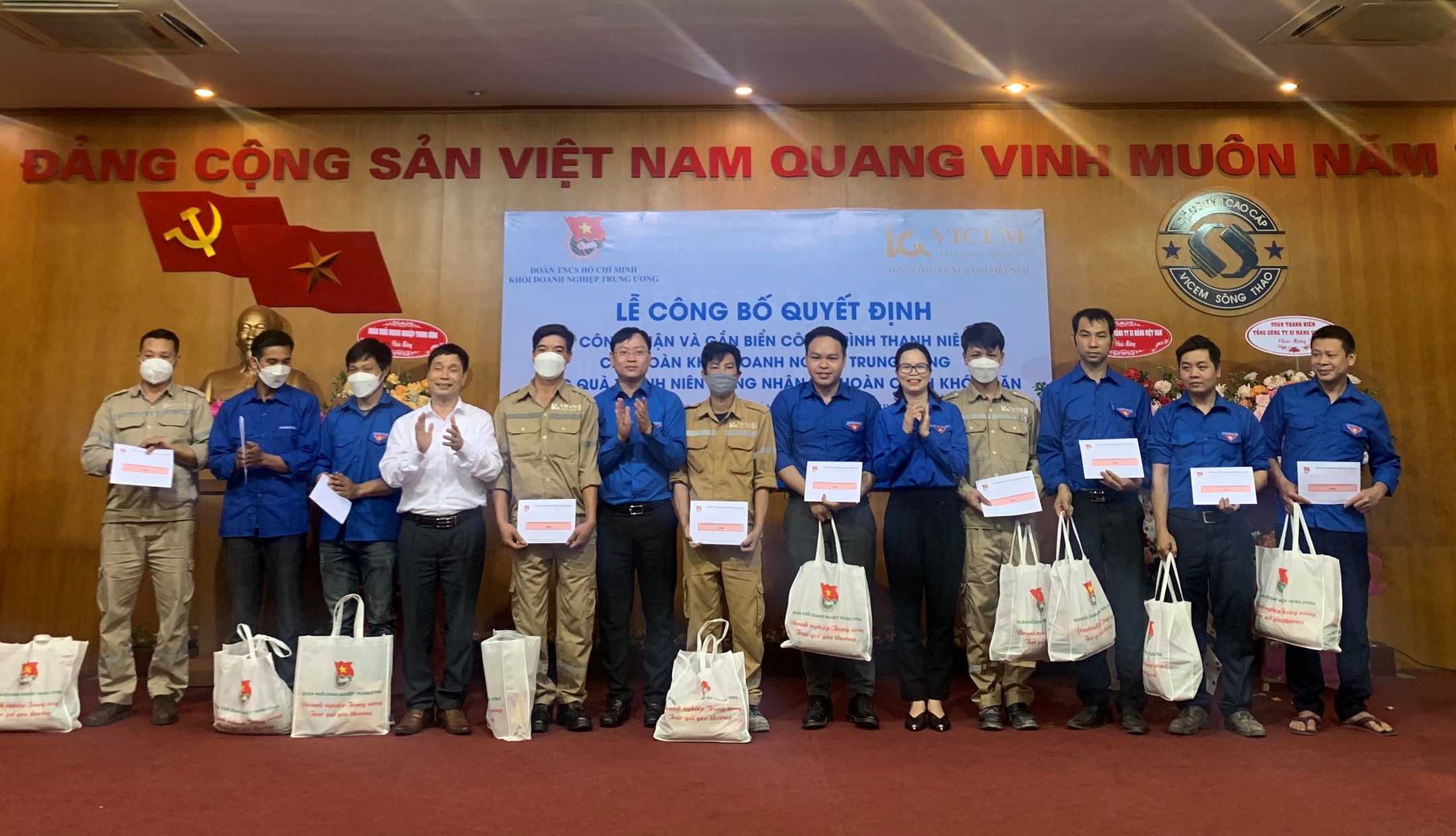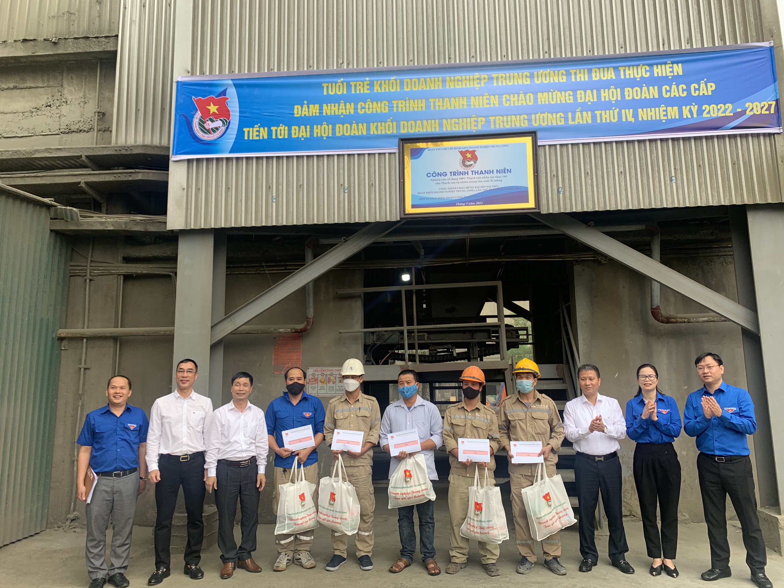 Bí thư Đoàn Khối Doanh nghiệp Trung ương Hoàng Thị Minh Thu và Phó Bí thư phụ trách Đảng bộ, Chủ tịch Công đoàn Tổng Công ty Xi măng VN Phạm Minh Đức trao quyết định công nhận Công trình thanh niên cấp Đoàn Khối DNTW cho Đoàn thanh niên Công ty Cổ phần Xi măng Vicem Sông Thao