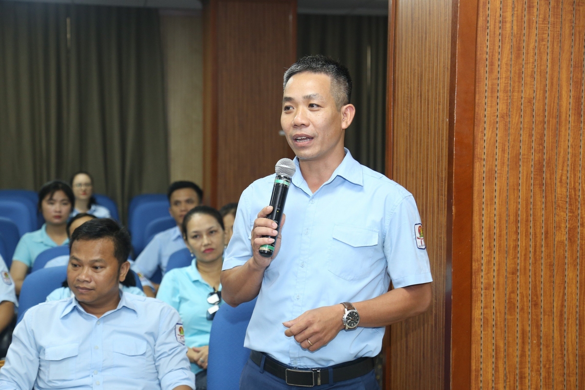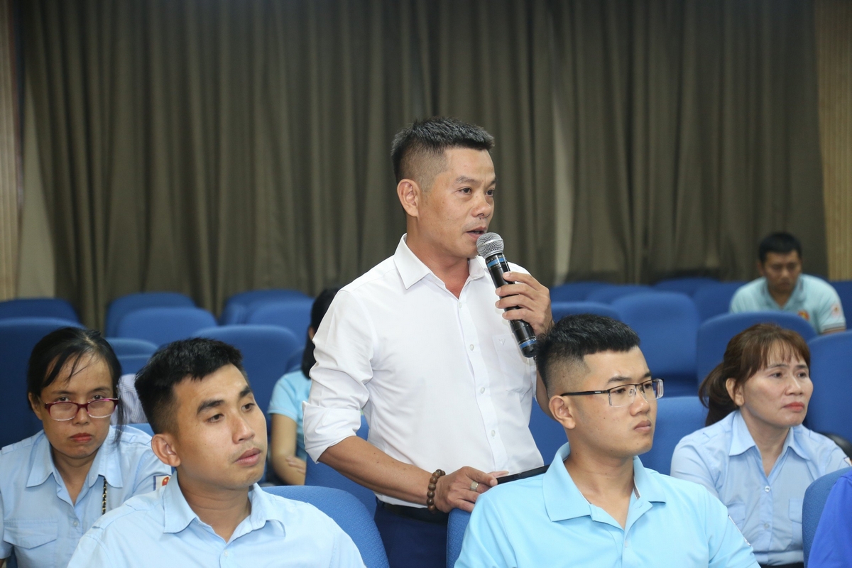 Đồng chí Lê Hải Long, Ủy viên BTV, Trưởng Ban Công tác thiếu nhi T.Ư Đoàn, Phó chủ tịch thường trực Hội đồng Đội T.Ư trao đổi về những ý kiến, đề xuất của các cán bộ phụ trách thiếu nhi, giáo viên TPT Đội TP Đà Nẵng nêu ra