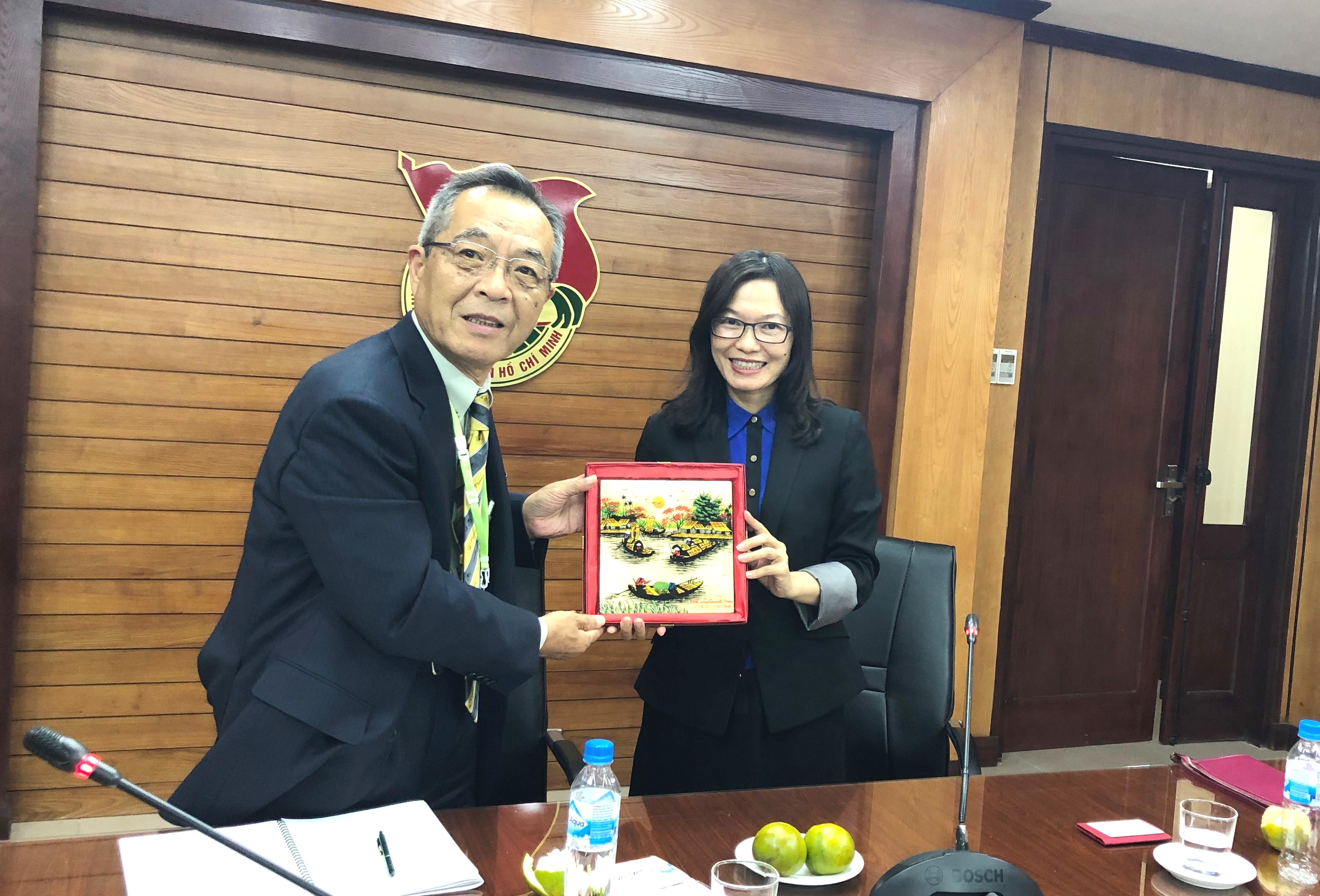 Đón tiếp đoàn có đồng chí Phạm Phương Chi - Giám đốc Trung tâm hợp tác Quốc tế Cydeco thuộc Trung ương Đoàn TNCS Hồ Chí Minh.