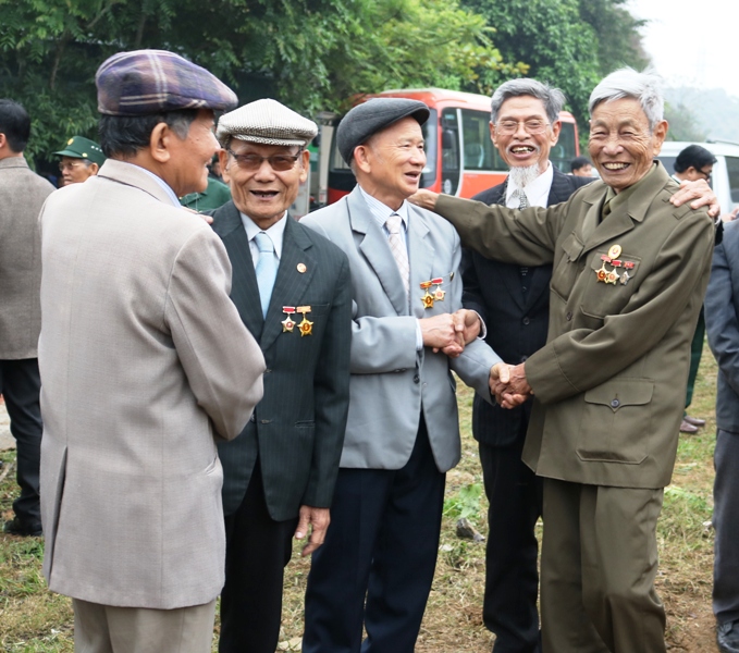 Các Cựu thanh niên xung phong làm đường 12B vui mừng gặp lại nhau trong lễ kỷ niệm