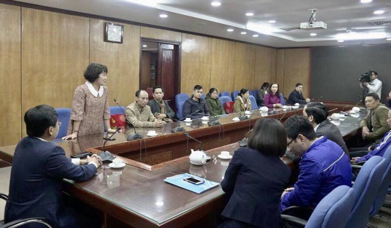 Đồng chí Lê Hồng Hạnh, Chủ tịch Công đoàn Cơ quan Trung ương Đoàn phát biểu tại buổi gặp mặt