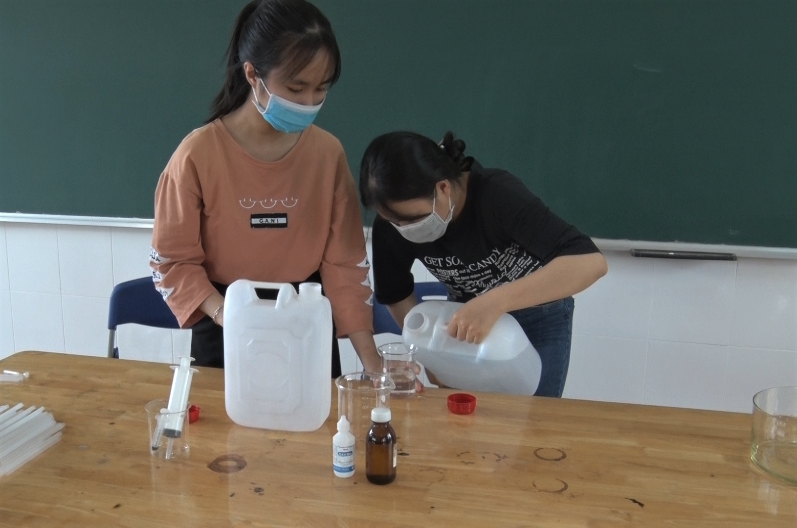 ĐVTN Trường THPT Mạc Đĩnh Chi huyện Chư Pah điều chế nước rửa tay sát khuẩn