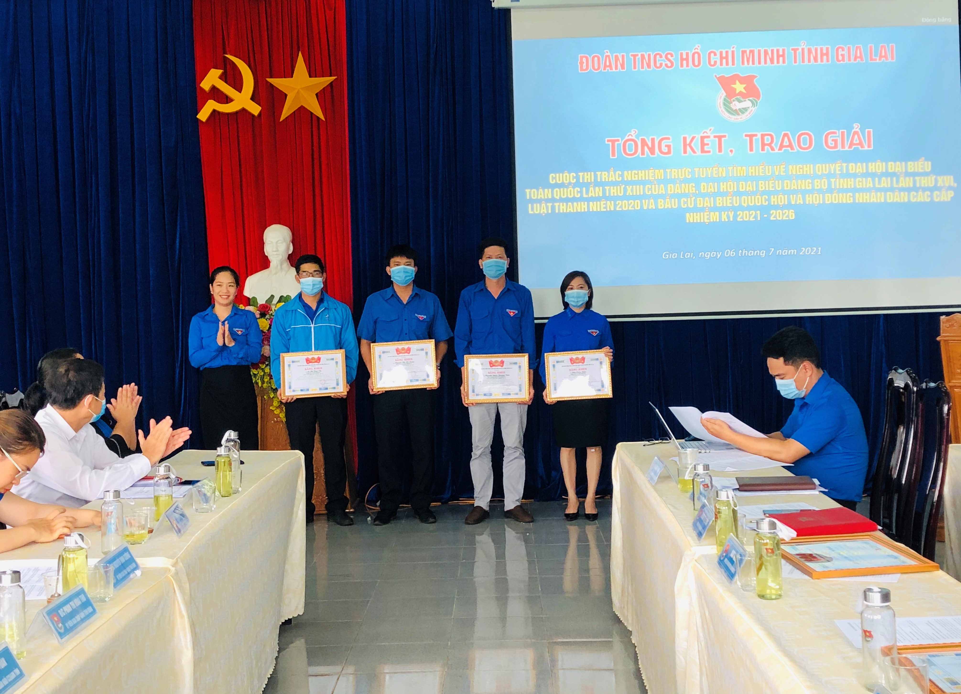 Ngày 6/7 Đoàn thanh niên tỉnh Gia Lai đã tổ chức tổng kết và trao giải cuộc thi trực tuyến “Tìm hiểu Nghị quyết Đại hội đại biểu toàn quốc lần thứ XIII của Đảng, Đại hội đại biểu Đảng bộ tỉnh Gia Lai lần thứ XVI, nhiệm kỳ 2020 - 2025, Luật Thanh niên 2020 và bầu cử đại biểu Quốc hội và Hội đồng nhân dân các cấp nhiệm kỳ 2021 - 2026”.
