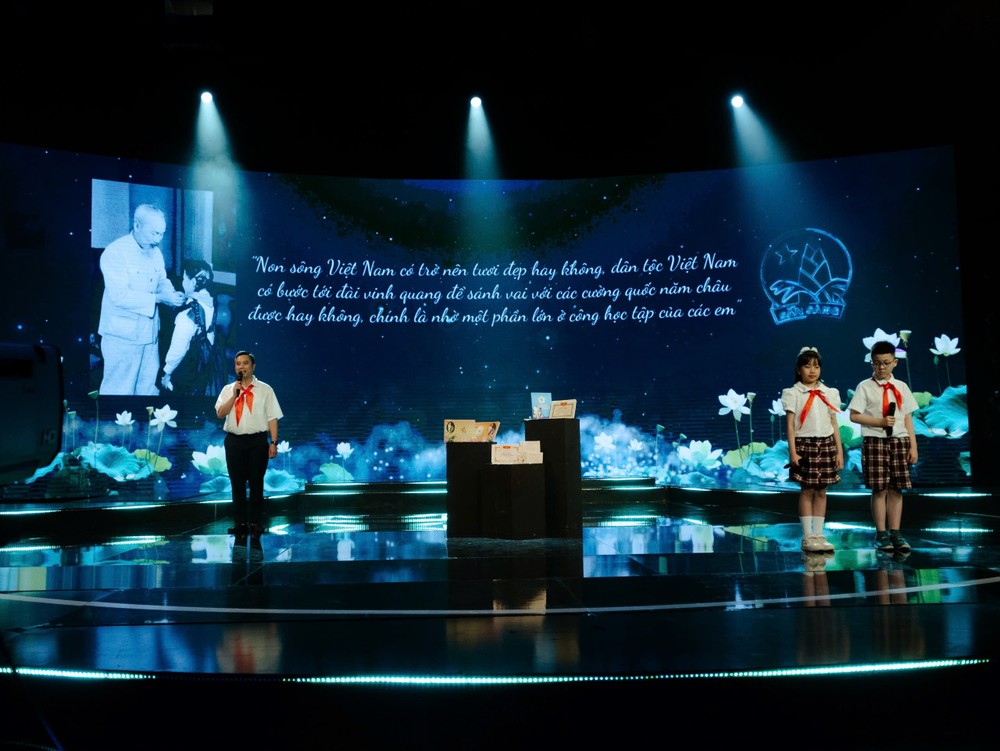 Mở đầu chương trình là chuỗi phóng sự tái hiện không gian thiêng liêng của lễ kết nạp Đội viên, nơi các em được nhận chiếc khăn quàng đỏ - biểu tượng cho lý tưởng cách mạng, sự hy sinh và tình yêu đất nước.