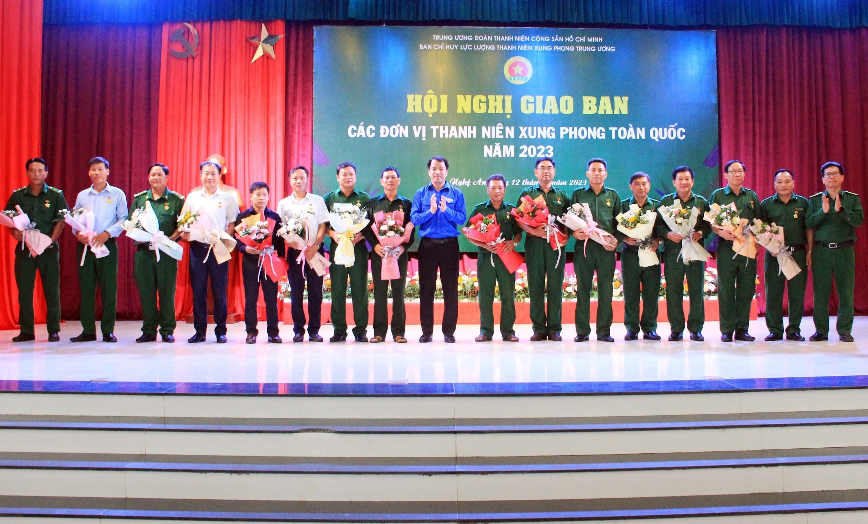 Bí thư Trung ương Đoàn Ngô Văn Cương trao "Kỷ niệm chương Thanh niên xung phong" cho các đồng chí thanh niên xung phong tiêu biểu toàn quốc. Ảnh: Thanh Quỳnh