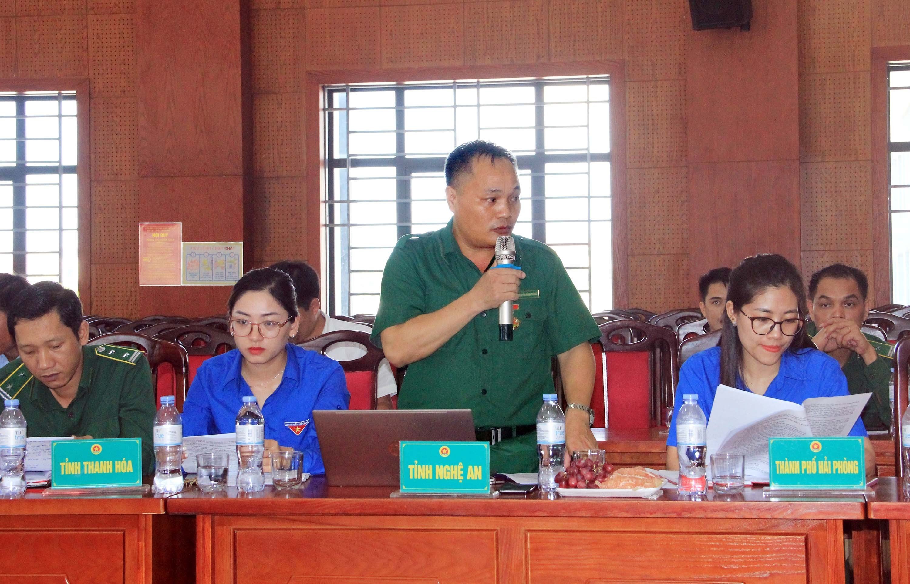 Đồng chí Nguyễn Đình Thắng - Chỉ huy trưởng lực lượng thanh niên xung phong tỉnh Nghệ An tham gia phát biểu ý kiến tại hội nghị. Ảnh: Thanh Quỳnh