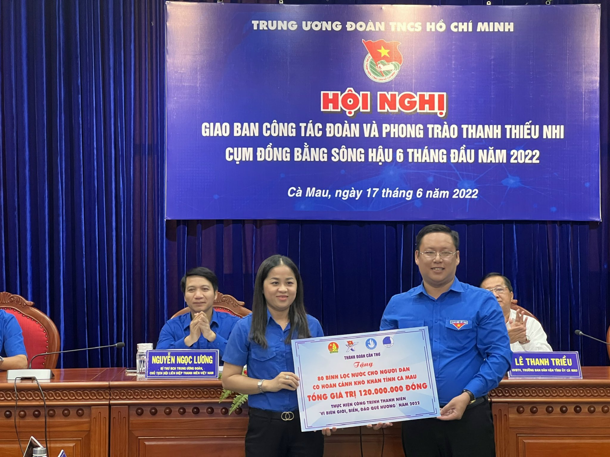 Nhân dịp này, Trung ương Đoàn đã trao tặng 200 túi quà an sinh trị giá 50 triệu đồng cho Tỉnh đoàn Cà Mau; Thành đoàn Cần Thơ cũng trao tặng 80 bình lọc nước cho người dân có hoàn cảnh khó khăn tỉnh Cà Mau trị giá 120 triệu đồng.