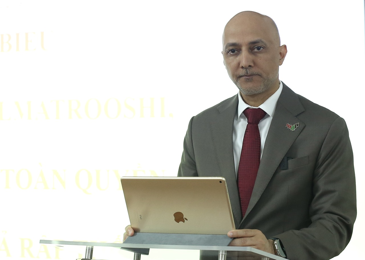Ngài Bader Almatrooshi, Đại sứ đặc mệnh toàn quyền Các Tiểu vương quốc Ả-rập Thống nhất (UAE) tại Việt Nam phát biểu tại chương trình