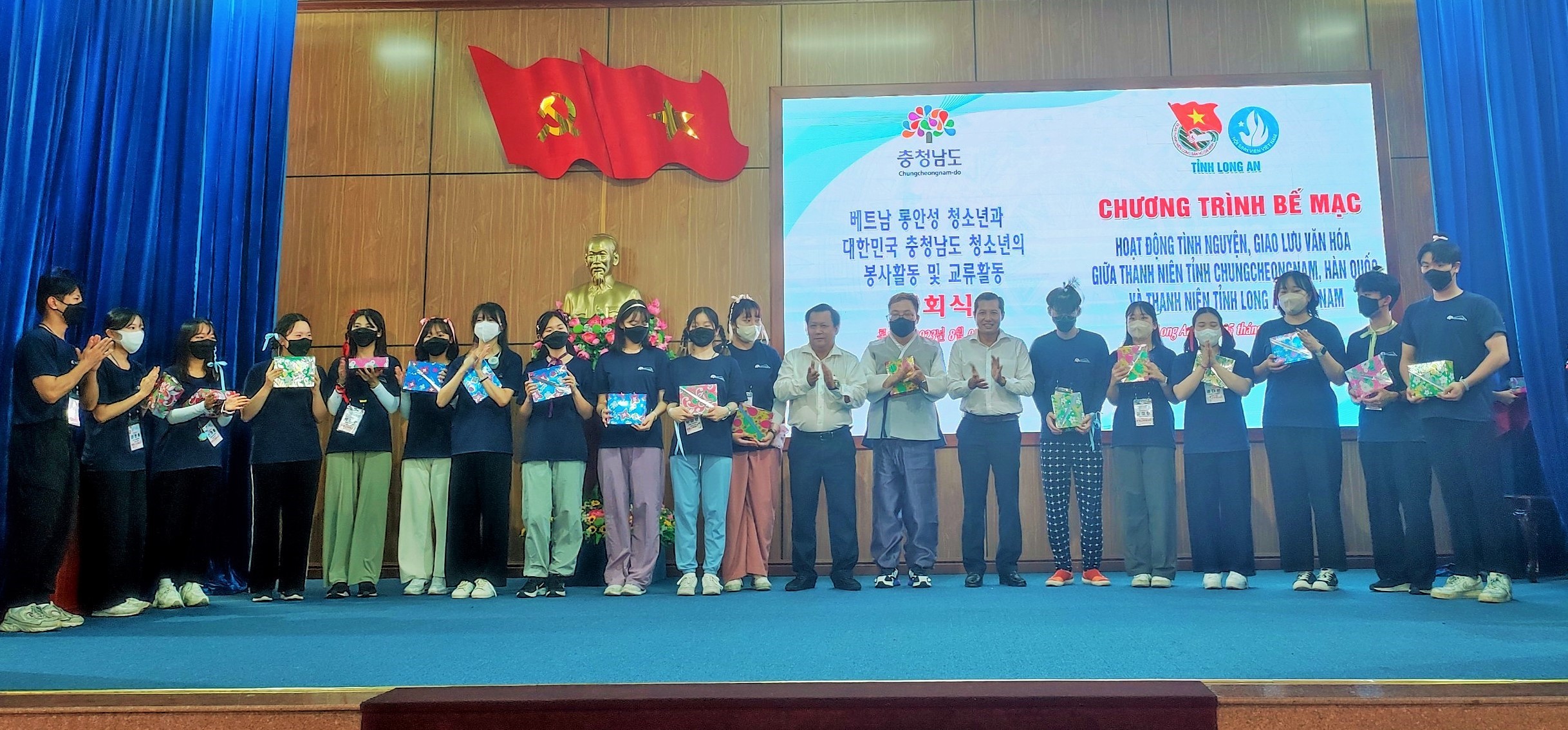 Kết thúc chương trình, Ban Thường vụ Tỉnh Đoàn Long An đã gửi tặng quà lưu niệm cho đoàn tình nguyện, học sinh, sinh viên tỉnh Chungcheongnam vì những hoạt động thiết thực, ý nghĩa tại tỉnh Long An.