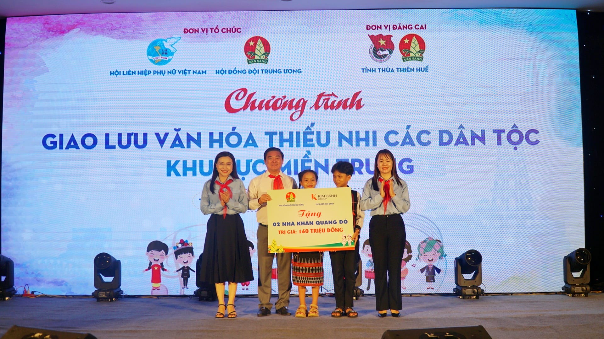 Dịp này, Trung ương Đoàn, Hội đồng Đội Trung ương cùng Quỹ từ thiện Kim Oanh dành tặng 50 suất quà cho 50 bạn thiếu nhi dân tộc thiểu số của tỉnh, thành phố khu vực miền Trung, mỗi suất trị giá 01 triệu đồng; đồng thời hỗ trợ kinh phí xây dựng 02 ngôi nhà khăn quàng đỏ, mỗi công trình trị giá 80 triệu đồng cho thiếu nhi có hoàn cảnh khó khăn trên địa bàn tỉnh Thừa Thiên Huế.