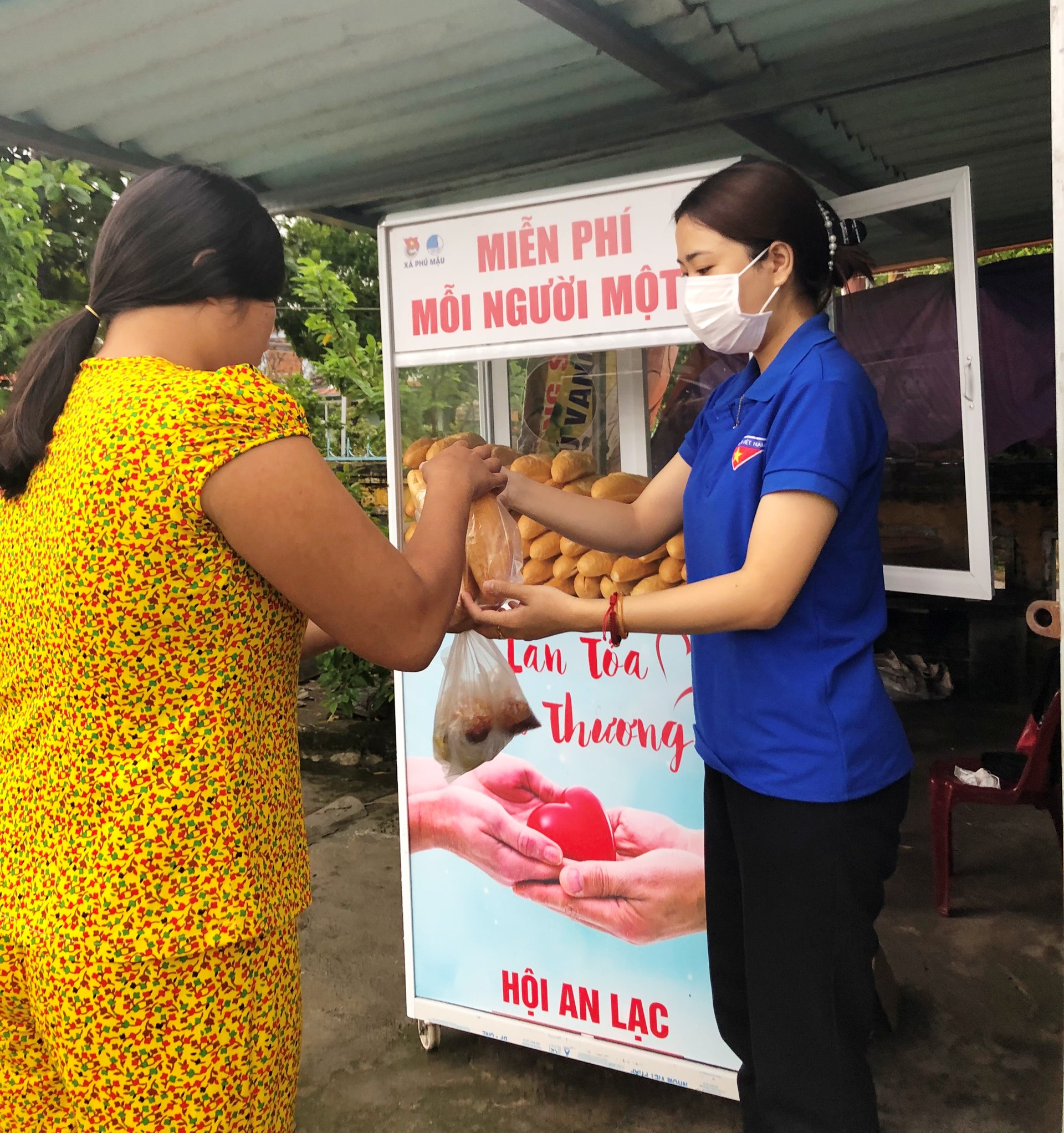 Nhưng hơn tháng nay, kể từ khi cho các bạn đoàn viên, thanh niên Xã đoàn Phú Mậu đặt “tủ mỳ 0 đồng” trong khuôn viên, để tặng bánh mỳ miễn phí cho người lao động nghèo, người già cả cô đơn, bệnh tật, khó khăn trong mùa dịch, bác chủ quán sẵn sàng dậy sớm hơn, đến quán mở cửa để các bạn trẻ lấy các vật dụng làm bếp. Mạnh thường quân lo kinh phí, các bạn đoàn viên, thanh niên bỏ công sức, trách nhiệm và tấm lòng, mới có thể duy trì dài lâu “tủ mỳ 0 đồng”, nên bác chủ quán bỏ tiền mua tôn, hỗ trợ làm mái che, để trong những ngày mưa, các bạn trẻ và người nhận mỳ được che mưa, che nắng.