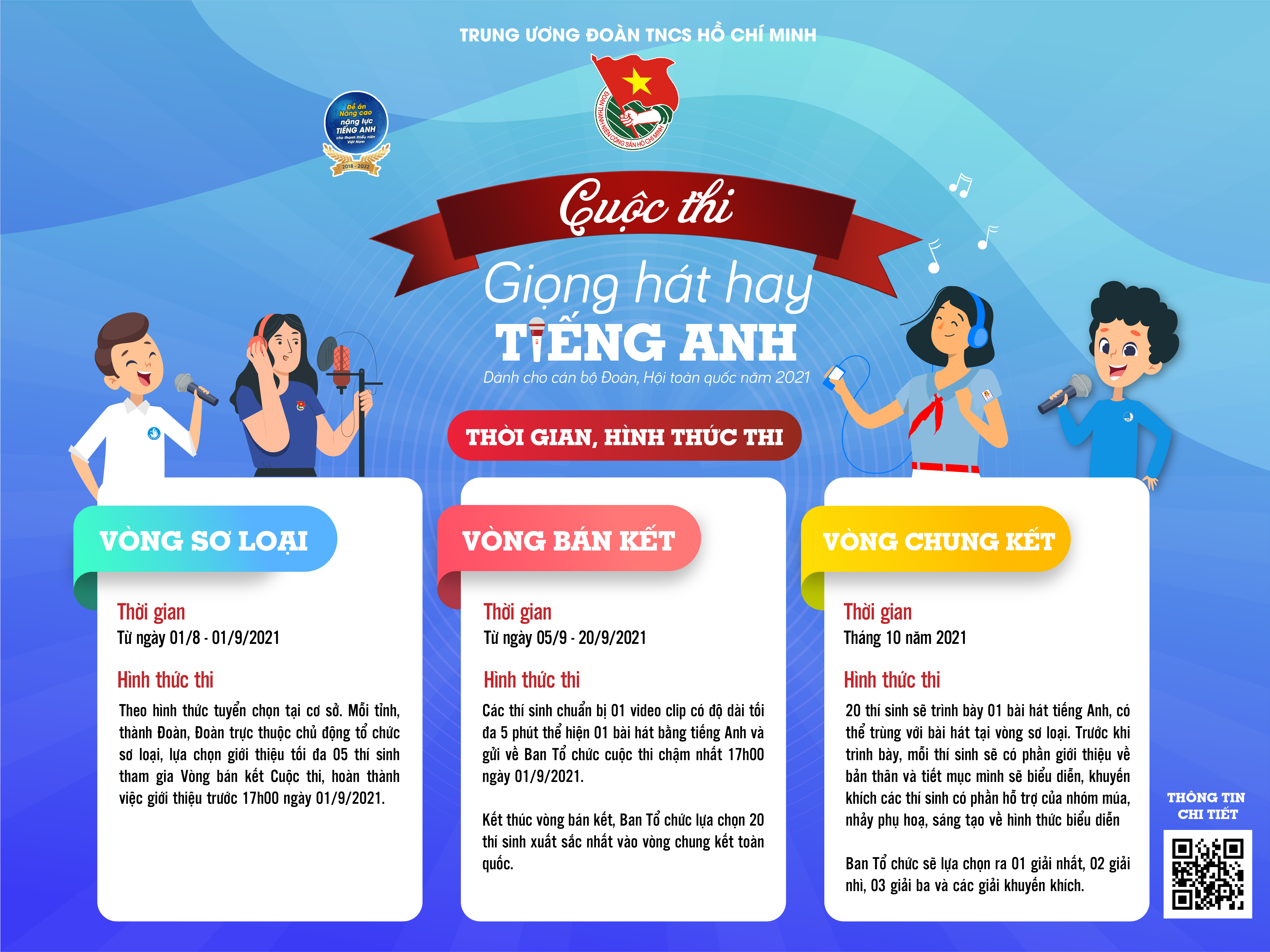 Triển khai Đề án nâng cao năng lực tiếng Anh cho thanh thiếu niên Việt Nam giai đoạn 2018 - 2022, nhằm tạo sân chơi lành mạnh, khơi dậy tinh thần học tập, rèn luyện tiếng Anh và hỗ trợ phát triển kỹ năng hội nhập quốc tế cho cán bộ Đoàn, Hội toàn quốc, Trung ương Đoàn TNCS Hồ Chí Minh tổ chức Cuộc thi “Giọng hát hay tiếng Anh dành cho cán bộ Đoàn, Hội toàn quốc năm 2021”.