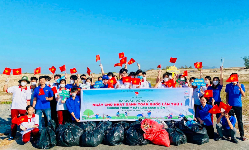 Cùng với đó, các phong trào, chiến dịch về BVMT, BĐKH đã và đang được triển khai thực hiện trong các hoạt động thường niên của Đoàn. Đặc biệt các hoạt động về BVMT được tổ chức Đoàn triển khai mạnh mẽ trong Tháng thanh niên, Chiến dịch Thanh niên tình nguyện hè… Nổi bật, phong trào làm sạch biển được các cấp bộ Đoàn trong tỉnh triển khai thực hiện xuyên suốt từ đầu năm đến nay nhằm thiết thực hưởng ứng Năm du lịch quốc gia 2023 “Bình Thuận - Hội tụ xanh” và chủ đề năm của tỉnh “Chỉnh trang đô thị, giữ gìn, bảo vệ môi trường, cảnh quan xanh, sạch, đẹp”. Theo đó, các huyện, thị, thành đoàn và đoàn trực thuộc tỉnh đã đồng loạt tổ chức Ngày chủ nhật xanh và huy động lực lượng thanh niên tổ chức các hoạt động vệ sinh các bãi biển; quét dọn, thu gom rác tại địa phương, đơn vị, các điểm đen; trồng và chăm sóc cây xanh...tạo điểm nhấn về cảnh quan sinh thái. Qua đó, nhiều du khách đến vui chơi tại các bãi biển trên địa bàn TP. Phan Thiết, thị xã La Gi, huyện Tuy Phong... đánh giá cảnh quan sạch đẹp.