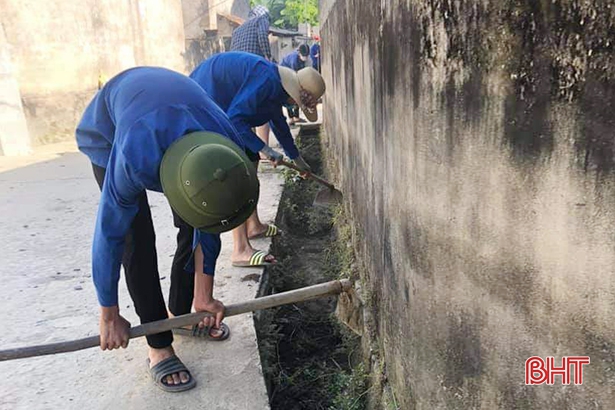 ĐVTN huyện Đức Thọ nạo vét kênh mương thoát thải trong khu vực dân cư
