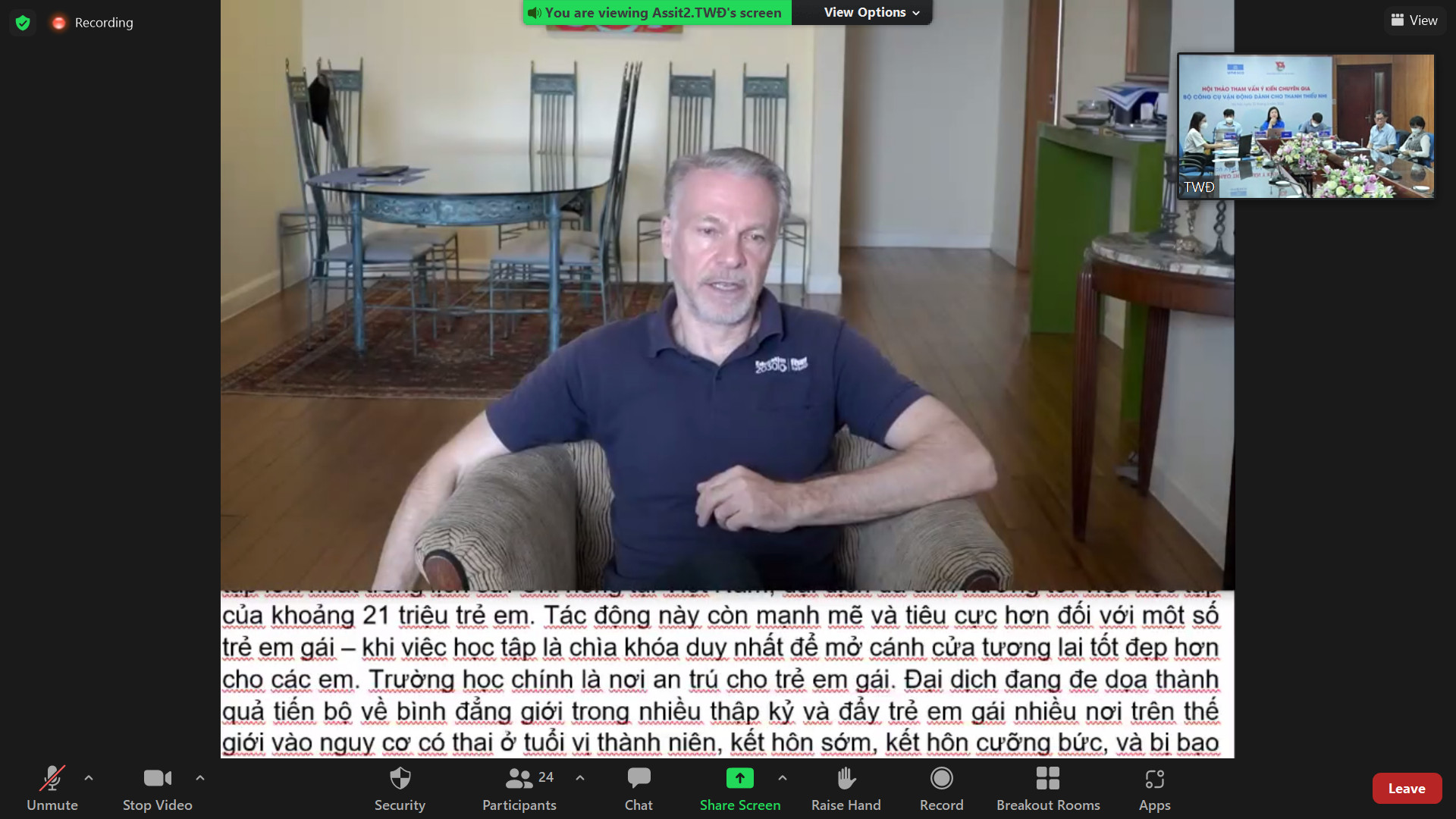 Ông Christian Manhart - Trưởng Đại diện UNESCO tại Việt Nam phát biểu trực tuyến tại Hội thảo