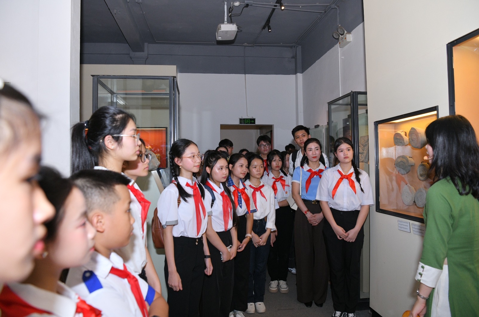 Tại đây, các đại biểu thiếu nhi và thầy cô Tổng phụ trách đã hào hứng tham gia tìm hiểu về Kinh thành Thăng Long xưa với các di tích như: cửa Đoan Môn, sân Đan Chì, điện Kính Thiên, không gian trưng bày khu di sản...