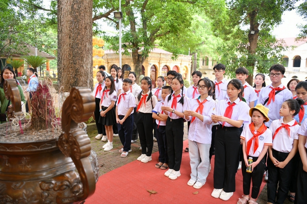 Các đại biểu thiếu nhi dâng hương trong Khu di tích Hoàng Thành Thăng Long