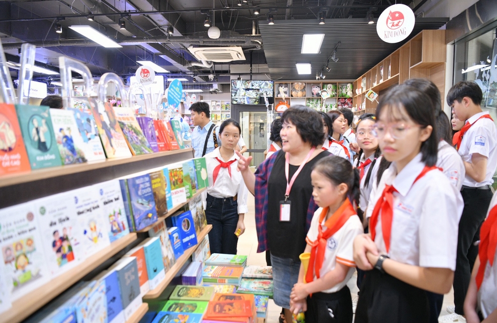 Tới tham quan Nhà Xuất bản Kim Đồng, các đại biểu đã cùng tìm hiểu rất nhiều ấn phẩm hay dành cho thiếu nhi và tham gia chương trình giao lưu Những người bạn từ trang sách - Cùng em đọc và làm theo báo Đội.