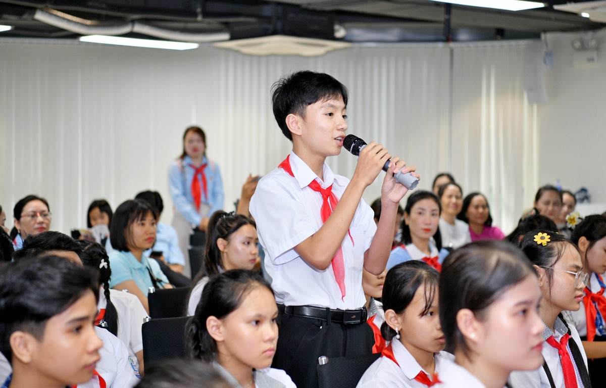 Đồng thời lãnh đạo Hội đồng Đội T.Ư và Nhà xuất bản Kim Đồng cũng chia sẻ với các em nhiều thông tin bổ ích về sách và các hoạt động, phong trào nhằm phát triển văn hóa đọc trong thanh thiếu nhi.