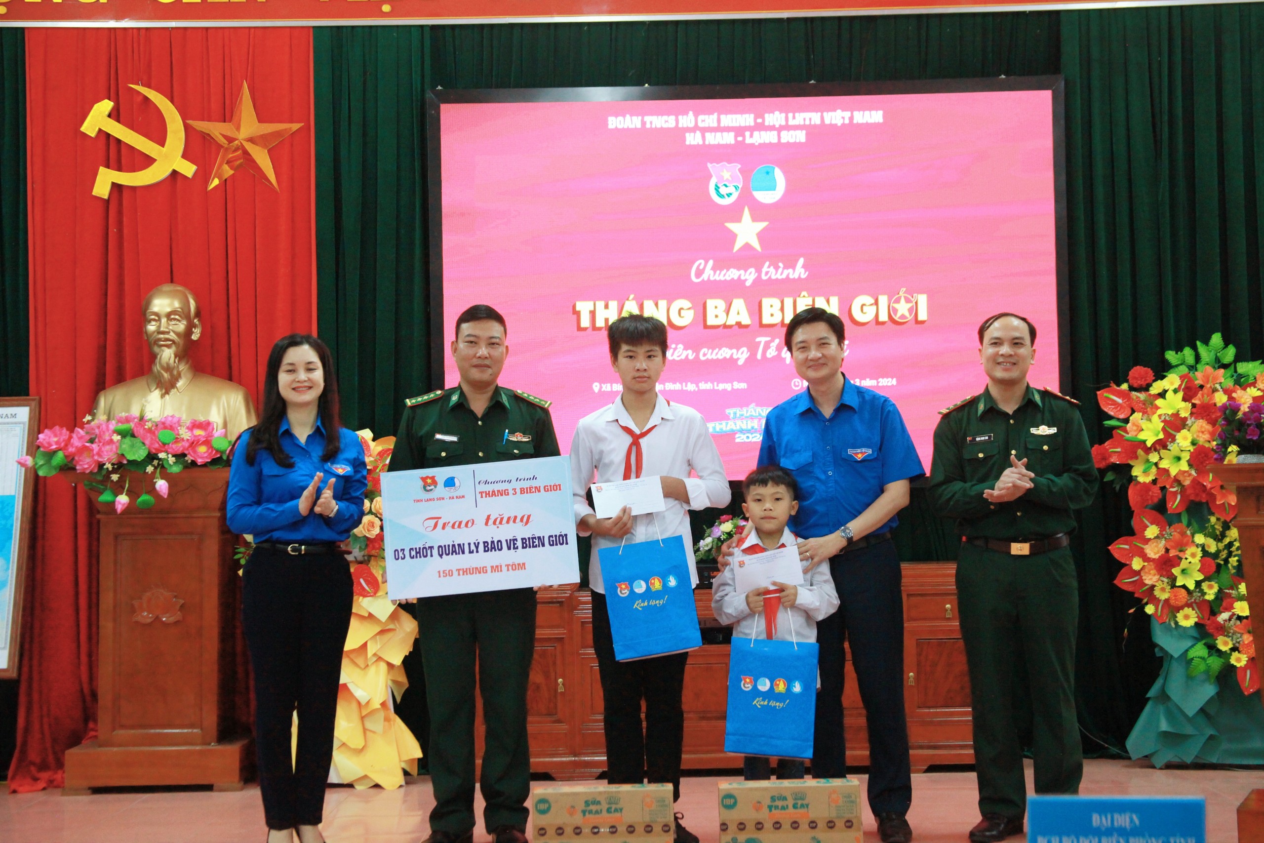 Tại Chương trình, Tỉnh đoàn Hà Nam và Tỉnh đoàn Lạng Sơn đã trao kinh phí hỗ trợ xây dựng công trình “Thắp sáng đường tuần tra biên giới” cho Đồn Biên phòng Chi Lăng trị giá 130 triệu đồng; hỗ trợ kinh phí 20 triệu đồng bê tông hóa đường giao thông nông thôn cho Huyện đoàn Đình Lập, trao tặng 150 thùng mỳ ăn liền cho cán bộ, chiến sỹ làm nhiệm vụ tại 3 chốt quản lý, bảo vệ biên giới; tặng 2 suất quà cho 2 học sinh là con nuôi Đồn Biên phòng Chi Lăng.