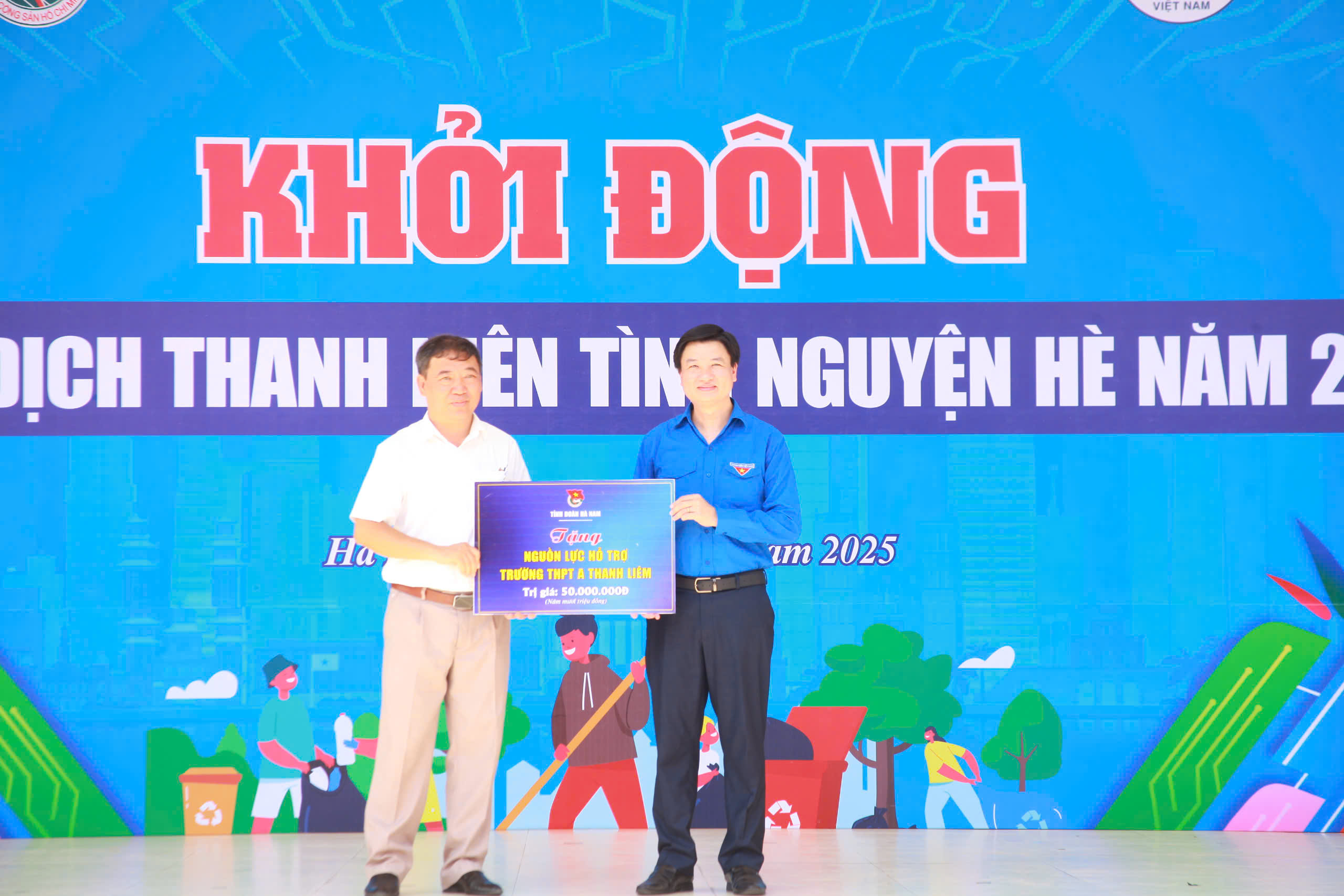 Nhân dịp này, Tỉnh đoàn, Hội LHTN Việt Nam tỉnh trao tặng 20 suất quà cho các em học sinh Trường THPT A Thanh Liêm có hoàn cảnh khó khăn vươn lên học tập, mỗi suất trị giá 1 triệu đồng và nguồn lực hỗ trợ Trường THPT A Thanh Liêm trị giá 50 triệu đồng. Bên cạnh đó, tặng 250 suất khám, tư vấn, cấp phát thuốc cho nhân dân trên địa bàn tỉnh trị giá 50 triệu đồng; phối hợp với Bệnh viện Mắt Hà Nội – Hà Nam tặng gói khám mắt chuyên sâu miễn phí cho học sinh trường THPT A Thanh Liêm.