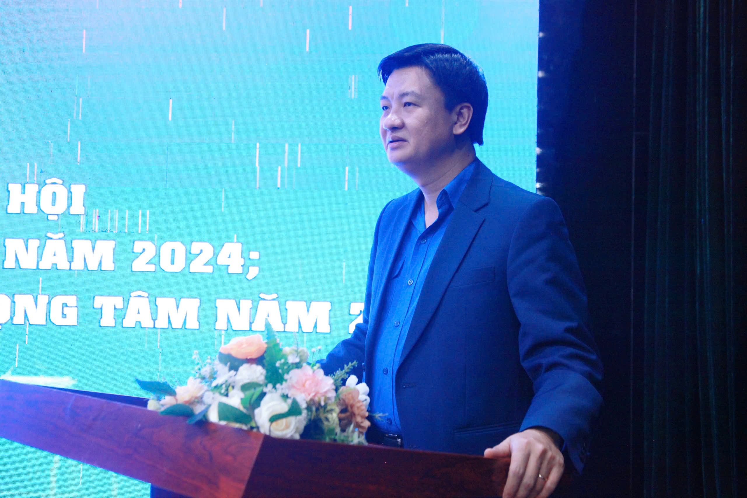 Đồng chí Trần Ngọc Nam, Uỷ viên BTV Trung ương Đoàn, Tỉnh uỷ viên, Bí thư Tỉnh đoàn, Chủ tịch Hội LHTN Việt Nam tỉnh phát biểu tại hội nghị