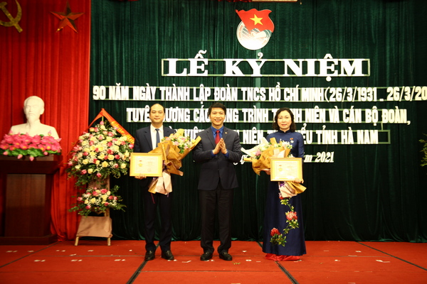 Trong dịp này, toàn tỉnh Hà Nam đã có 52 tập thể, 90 cá nhân được BCH Trung ương Đoàn và BCH Tỉnh đoàn khen thưởng. Trong đó, 25 tập thể và 26 cá nhân được TW Đoàn tặng Bằng khen; 1 chi đoàn được TW Đoàn công nhận và tuyên dương chi đoàn mạnh; 10 đồng chí được công nhận là Bí thư chi đoàn tiêu biểu toàn quốc. Ban Chấp hành Tỉnh đoàn cũng tặng Bằng khen cho 37 tập thể, 64 cá nhân có thành tích xuất sắc trong công tác Đoàn và phong trào thanh thiếu nhi giai đoạn 2016 - 2020 đồng thời công nhận 90 công trình thanh niên là công trình thanh niên tiêu biểu tỉnh Hà Nam chào mừng kỷ niệm 90 năm ngày thành lập Đoàn TNCS Hồ Chí Minh (26/3/1931-26/3/2021); tặng bằng khen cho 10 công trình thanh niên tiêu biểu xuất sắc, thể hiện rõ nét nhất sức sáng tạo, tinh thần tinh nguyện của thanh niên tại buổi lễ.
