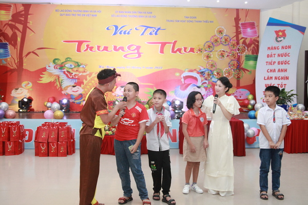 Chương trình “Vui tết Trung thu năm 2022” gồm nhiều nội dung ý nghĩa, các em thiếu niên, nhi đồng được thưởng thức màn múa lân và các tiết mục văn nghệ dân gian, đương đại đặc sắc; tham gia các trò chơi dân gian cùng chị Hằng Nga và chú Cuội; phá cỗ, phát quà...