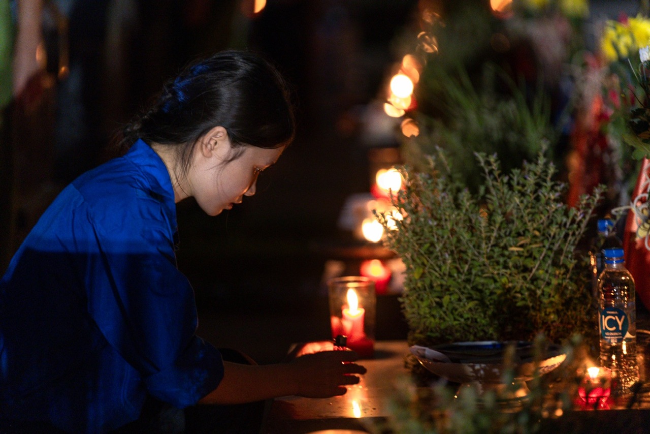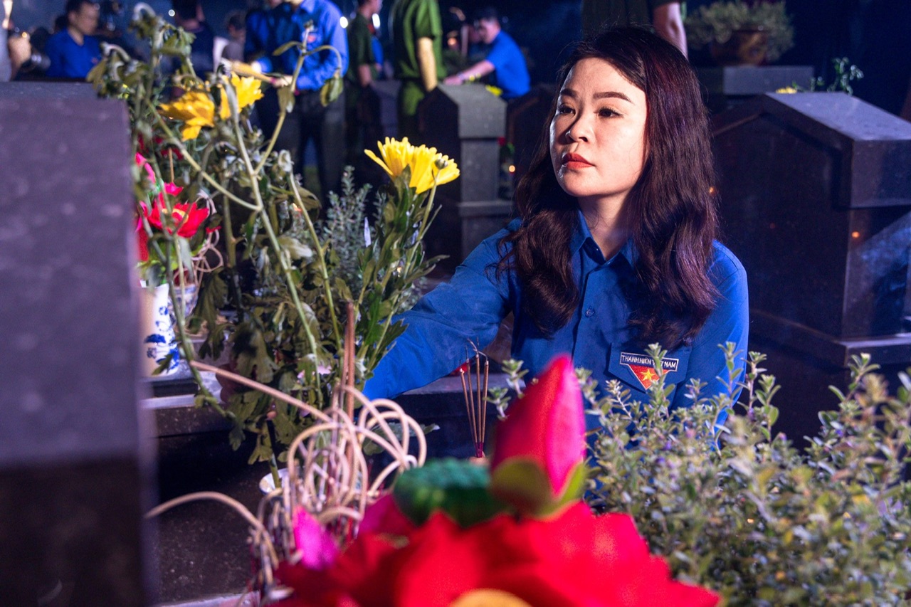 Những ngọn nến, bông hoa, nén hương thơm được thanh niên Hà Nội dâng lên các phần mộ anh hùng liệt sĩ