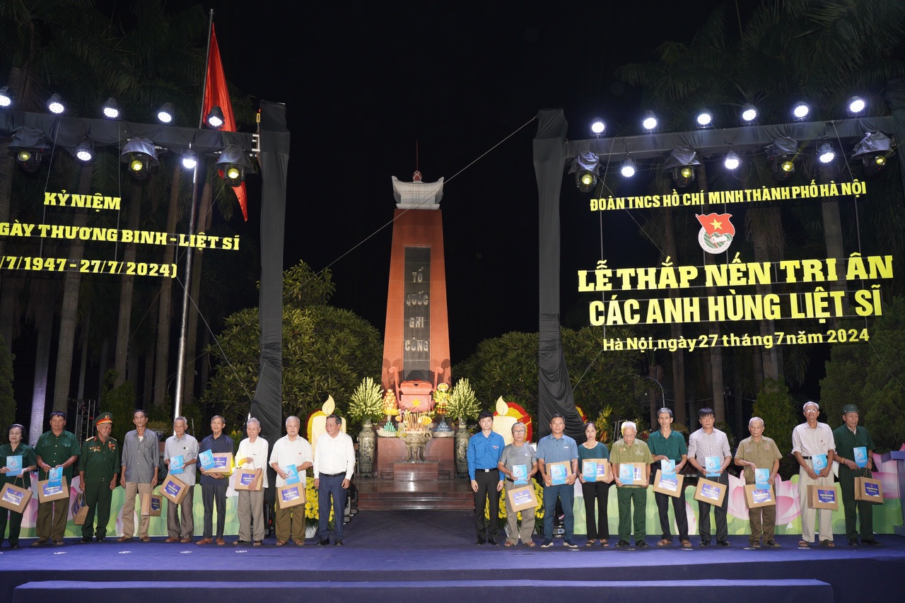 Tuổi trẻ Thủ đô cùng các đại biểu tham dự chương trình đã trao tặng 143 phần quà đến các gia đình chính sách, các bác thương bệnh binh, gia đình có công với cách mạng (mỗi suất bao gồm 1 triệu đồng tiền mặt và quà tặng), tổng trị giá quà tặng tại chương trình gần 200 triệu đồng; thắp nến, dâng hương, hoa tại 2.195 mộ các Mẹ Việt Nam anh hùng và anh hùng liệt sĩ đang yên nghỉ tại Nghĩa trang Liệt sĩ Thành phố.