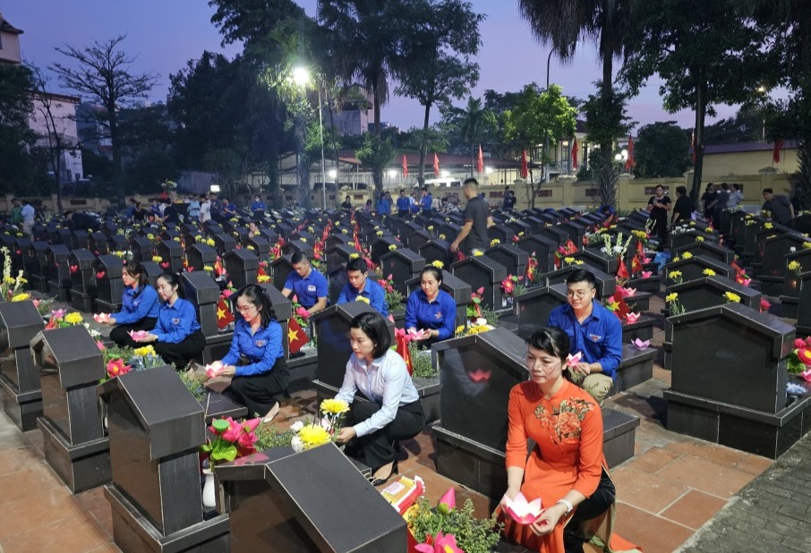 Cùng với các hoạt động thăm hỏi, tặng quà và thực hiện các phần việc thanh niên, các cơ sở Đoàn trực thuộc cũng trang trọng tổ chức Lễ thắp nến tri ân các anh hùng liệt sĩ tại các Nghĩa trang, đài tưởng niệm các anh hùng liệt sĩ của 30 quận, huyện, thị xã trên địa bàn Thành phố. Bằng những việc làm thiết thực, tuổi trẻ Thủ đô hôm nay mong muốn được thể hiện lòng tri ân sâu sắc tới các thế hệ cha anh đi trước đã hy sinh máu xương cho độc lập, tự do của Tổ quốc.