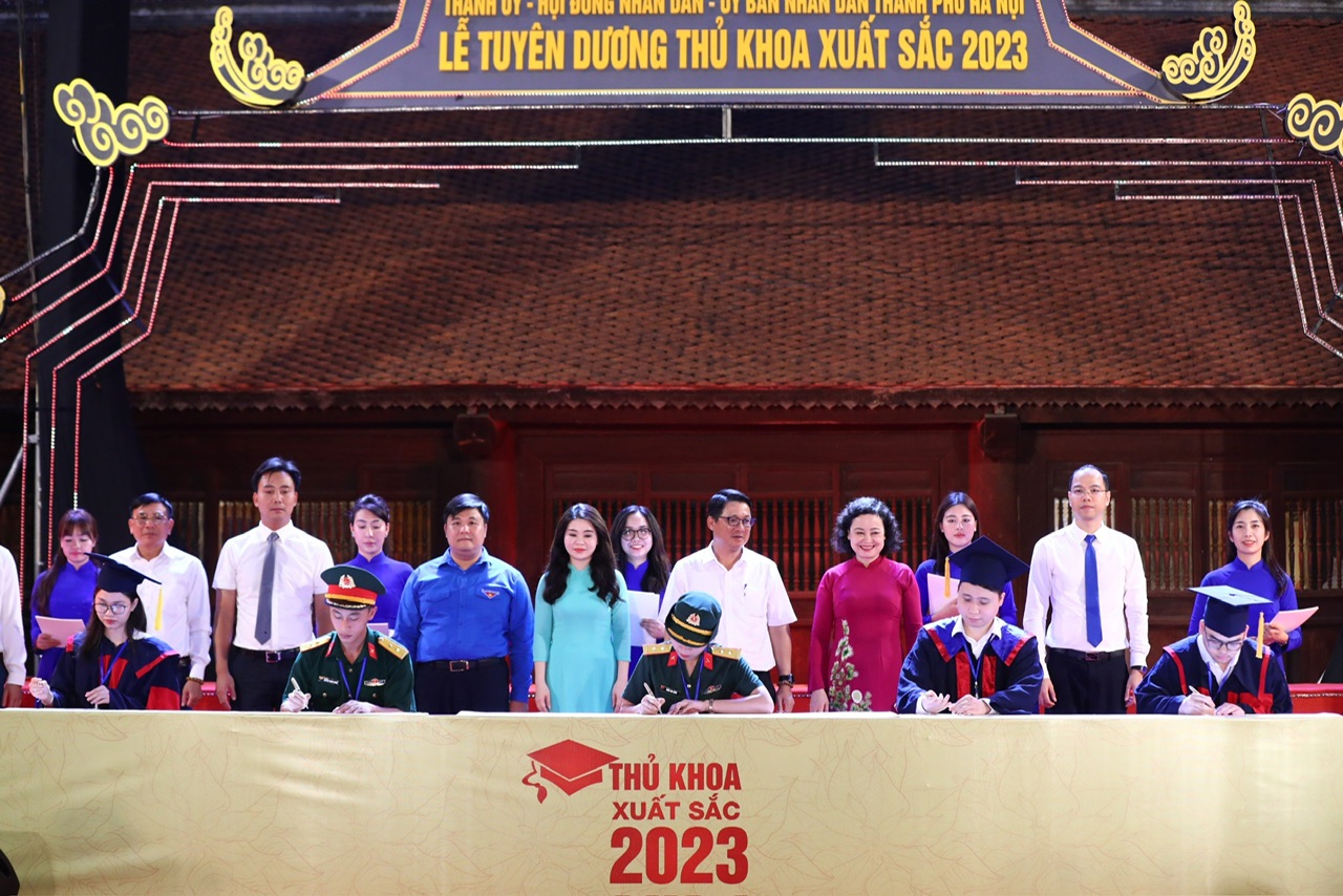 Phát biểu tại lễ ghi danh sổ vàng, Bí thư Thành đoàn Hà Nội Chu Hồng Minh cho biết: Năm nay là năm thứ 21 năm thành phố Hà Nội tổ chức các hoạt động tuyên dương, khen thưởng thủ khoa xuất sắc tốt nghiệp các trường đại học, học viện năm 2023 với nghi thức trang trọng và sự chuẩn bị chu đáo nhất. Đây là sự quan tâm đặc biệt, ghi nhận nỗ lực phấn đấu, cố gắng không mệt mỏi của các thủ khoa.