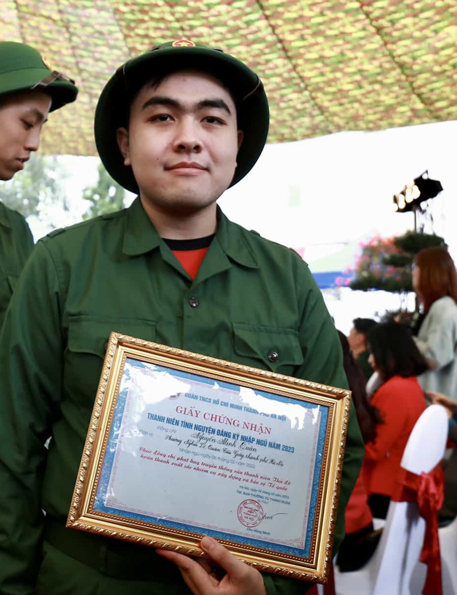 Là thanh niên viết đơn tình nguyện lên đường nhập ngũ, tân binh Đào Việt Duy (quận Tây Hồ) chia sẻ: Tôi tin rằng môi trường quân đội là môi trường rất tốt, có kỷ luật cao, giúp tôi có thể phấn đấu, rèn luyện bản thân. Sau này khi trở về, tôi sẽ trở thành công dân có ích cho gia đình, cho xã hội, cho Tổ quốc”.