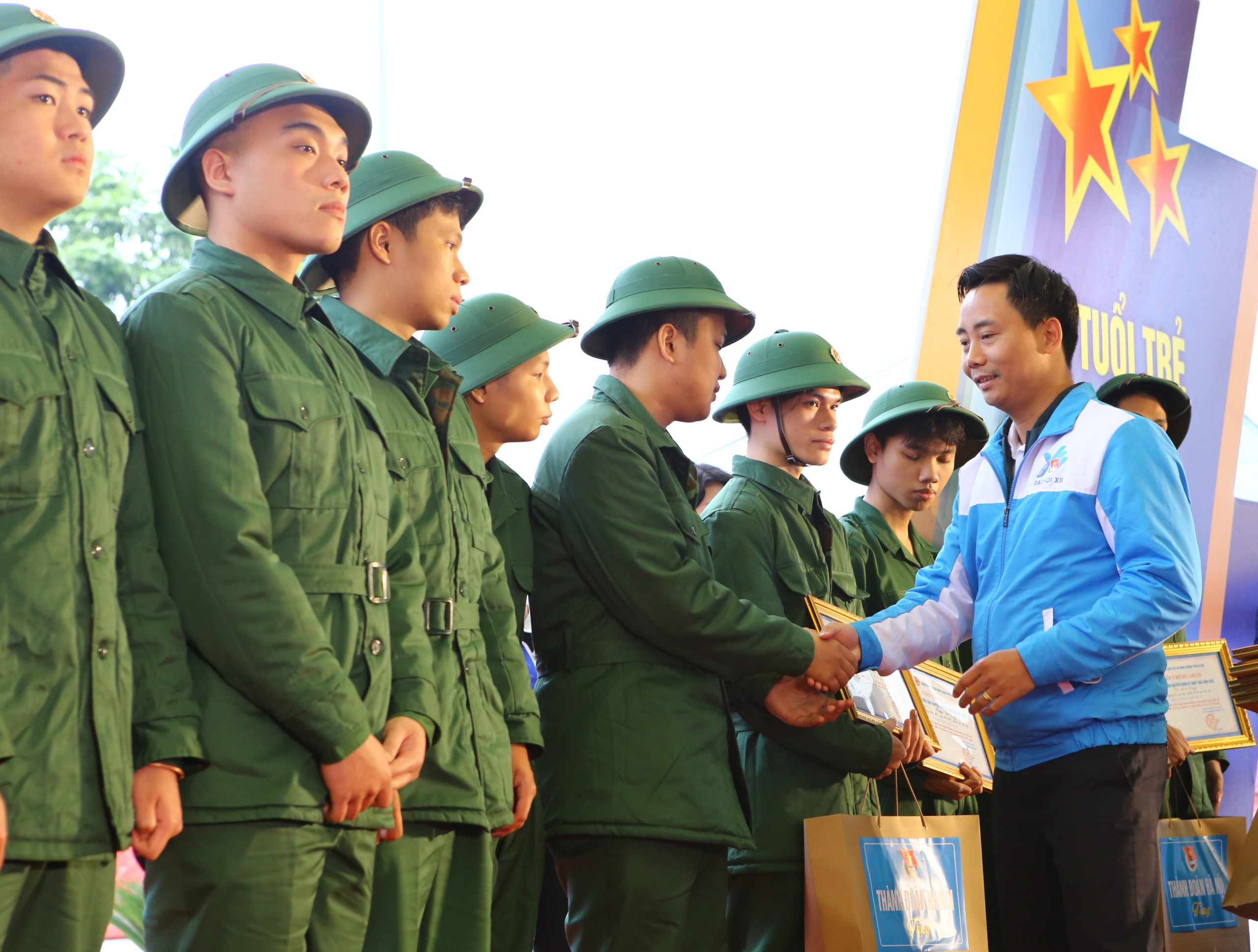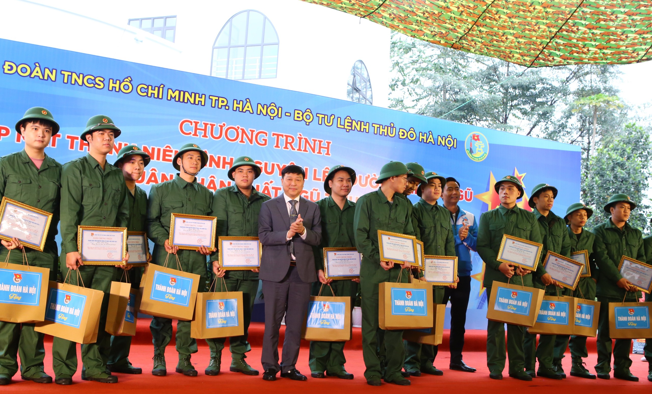 Cũng trong chương trình, nhằm động viên, khích lệ tinh thần các bạn đoàn viên, thanh niên tình nguyện lên đường nhập ngũ năm 2023, Ban Thường vụ Thành đoàn Hà Nội trao tặng giấy chứng nhận và quà tặng cho 76 thanh niên tình nguyện lên đường nhập ngũ bảo vệ Tổ quốc; tặng Bằng khen và quà cho 5 quân nhân xuất ngũ tiêu biểu và 5 chiến sĩ tham gia nghĩa vụ Công an nhân dân tiêu biểu.
