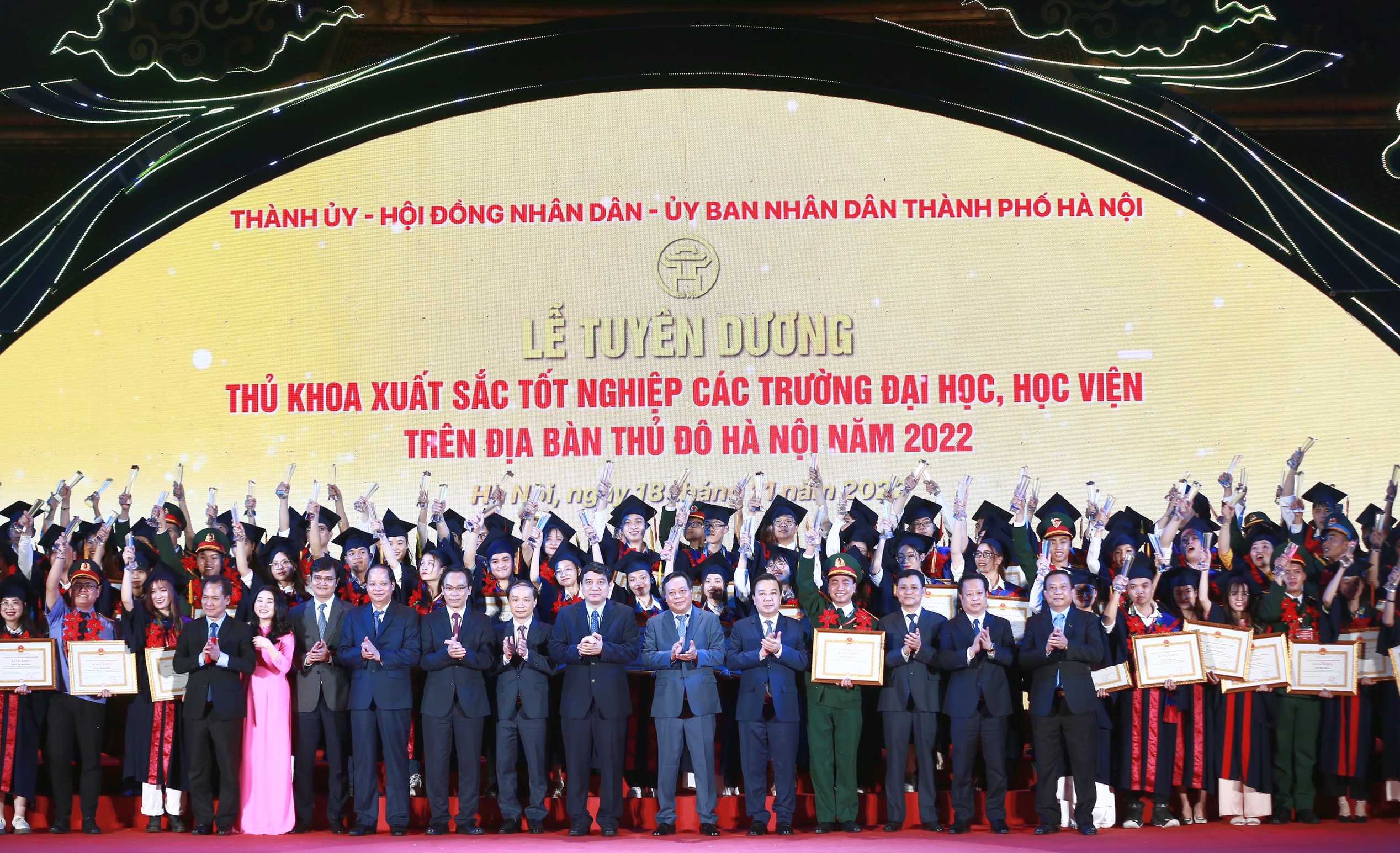 Phát biểu tại lễ tuyên dương, đồng chí Nguyễn Văn Phong, Phó Bí thư Thành ủy Hà Nội ghi nhận, biểu dương 98 thủ khoa xuất sắc tốt nghiệp các trường đại học, học viện trên địa bàn TP Hà Nội được tôn vinh ngày hôm nay là đại diện cho hàng triệu sinh viên đang miệt mài, hăng say học tập trên các giảng đường. Thành tích đạt được ngày hôm nay của các bạn là kết quả của một quá trình phấn đấu không ngừng nghỉ. “Các bạn là đại diện tiêu biểu cho một lớp trí thức trẻ nhiệt huyết, năng động, sáng tạo, tích cực học tập và nghiên cứu khoa học, tích cực tham gia các hoạt động vì cộng đồng, đam mê khởi nghiệp, lập nghiệp. Các bạn chính là tải sản quý của Thủ đô và đất nước”.
