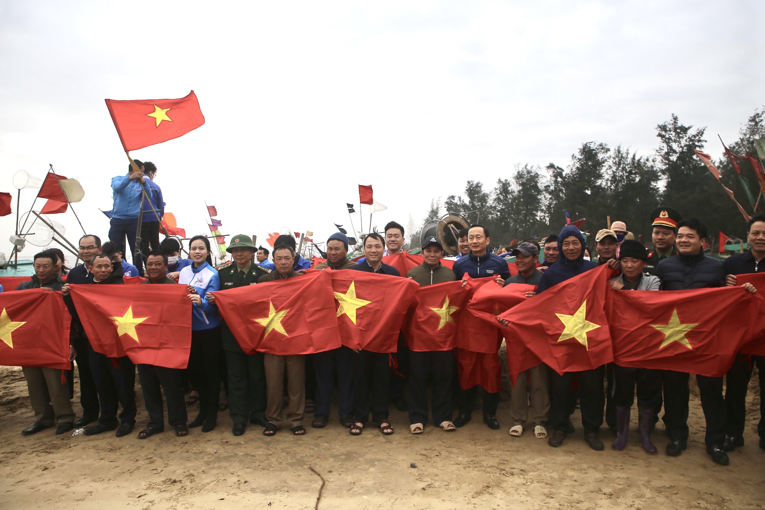 Tỉnh đoàn, BIDV Hà Tĩnh đã trao 1.000 lá cờ Tổ quốc cho các ngư dân địa phương