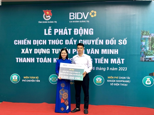 Trong chương trình, Ban Tổ chức đã phát động “Chiến dịch đẩy mạnh chuyển đổi số, phủ QR cho các hộ kinh doanh, tiểu thương, xây dựng tuyến phố văn minh, thanh toán không dùng tiền mặt”; ra mắt mô hình điểm “tuyến phố thanh toán không dùng tiền mặt” thuộc tuyến phố Nguyễn Trãi - Đông Hà. Đồng thời, đoàn viên, thanh niên, thành viên các Tổ Công nghệ số cộng đồng trên địa bàn Đông Hà phối hợp đội ngũ cán bộ BIDV tham gia tuyên truyền và vận động các hộ kinh doanh, tiểu thương trên tuyến phố Nguyễn Trãi, mở tài khoản thanh toán, phủ QR nhằm xây dựng tuyến phố thanh toán không dùng tiền mặt, với sự tham gia của gần 150 đoàn viên, thanh niên và cán bộ BIDV.