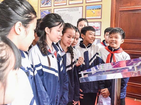 Đoàn viên thanh niên tham quan công trình thanh niên tại Nhà tưởng niệm Anh hùng liệt sỹ Phan Đình Giót