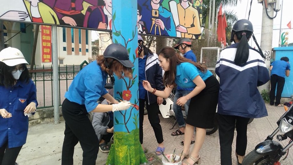 ĐVTN vẽ tác phẩm "Cột điện nở hoa"