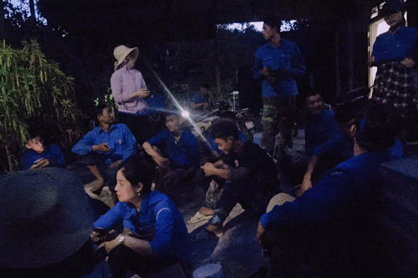 ĐVTN tiếp tế thức ăn, nước uống trong đêm cho các lực lượng trên núi.