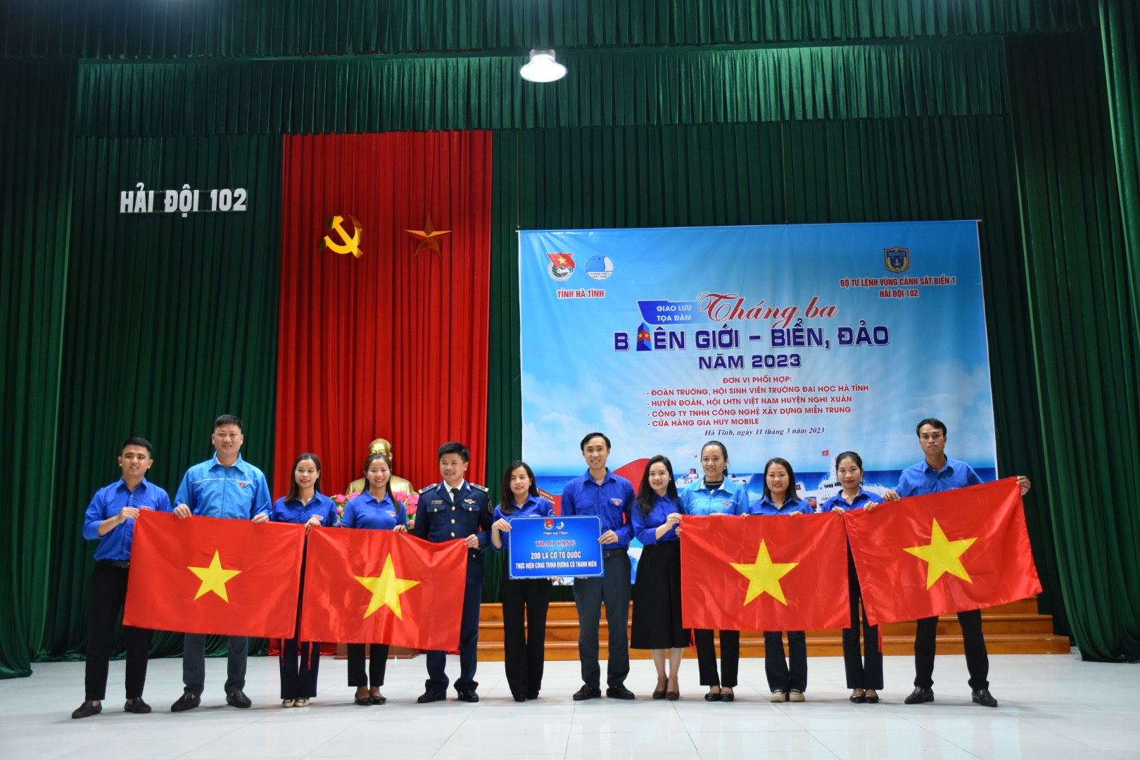 Tại Chương trình tháng ba biên giới, biển đảo cấp tỉnh, Tỉnh đoàn đã trao tặng 200 lá cờ tổ quốc cho Huyện đoàn Nghi Xuân thực hiện công trình đường cờ thanh niên