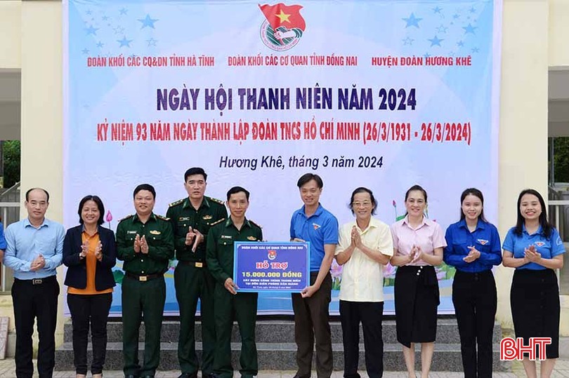 Đoàn Khối CCQ&DN tỉnh Hà Tĩnh, Đoàn Khối các cơ quan tỉnh Đồng Nai cùng lãnh đạo địa phương trao tặng 15 triệu đồng cho Đồn Biên phòng Bản Giàng để xây dựng tượng đài Bác Hồ với chiến sỹ biên phòng.