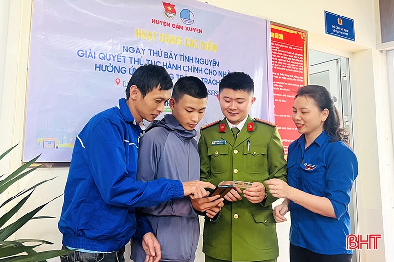 Huyện đoàn Cẩm Xuyên ra quân cao điểm Ngày thứ 7 tình nguyện giải quyết thủ tục hành chính tại Trung tâm Hành chính công huyện.