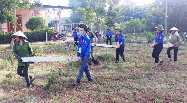 Không ngại thời tiết nắng nóng gay gắt, gần 50 đoàn viên thanh niên vẫn tích cực, nhiệt tình tham gia chỉnh trang và làm hàng rào sân bóng của xã. Không phụ tấm lòng của lực lượng tình nguyện, người dân trong thôn cũng dốc sức tham gia, người hỗ trợ nước uống, người hỗ trợ đổ cọc bê tông, tham gia vận chuyển cột, lắp đặt dây thép hàng rào... Tiếng cười nói, không khí xây dựng nông thôn mới rạo rực cả một vùng quê.
