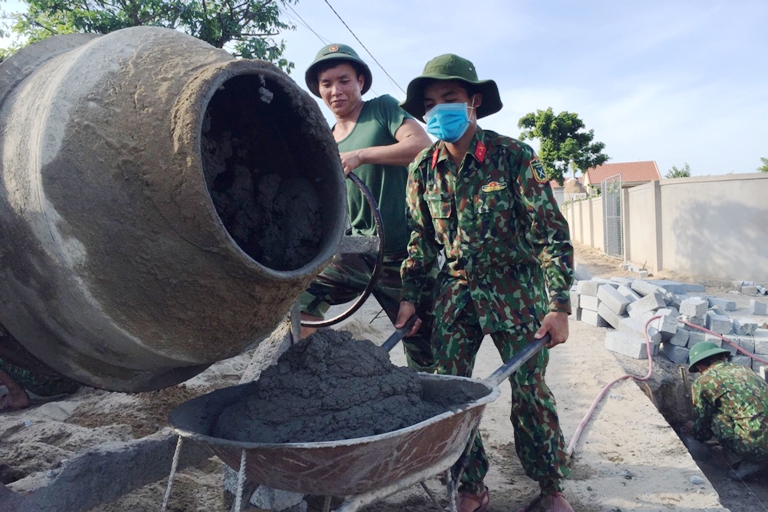 Hàng trăm chiến sỹ thuộc Trung đoàn 841 và Bộ CHQS tỉnh Hà Tĩnh chung sức cùng nhân dân 2 xã Thạch Mỹ và Hộ Độ (Lộc Hà) hoàn thành các công trình hạ tầng.