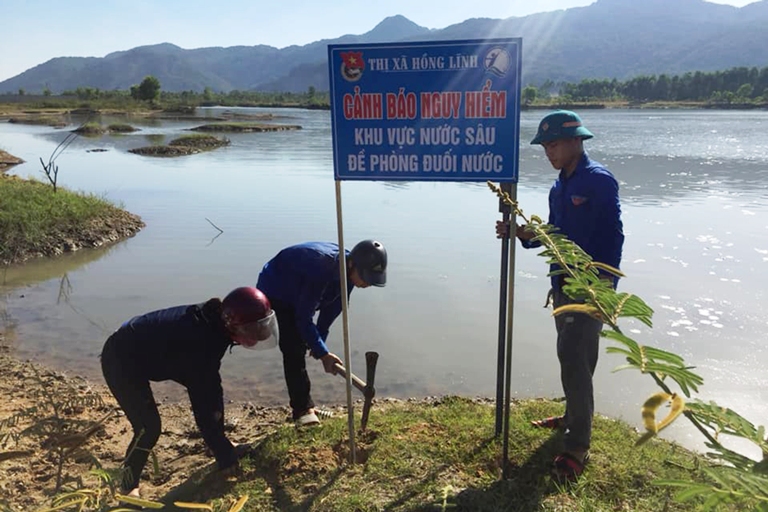 Thị đoàn Hồng Lĩnh cắm 50 biển cảnh báo đuối nước tại khu vực có nguy cơ xảy ra tai nạn đuối nước cao