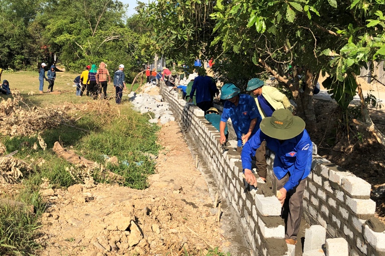 Hơn 125 đoàn viên thanh niên ra quân hỗ trợ xã Song Lộc (Can Lộc) xây dựng mương thoát nước