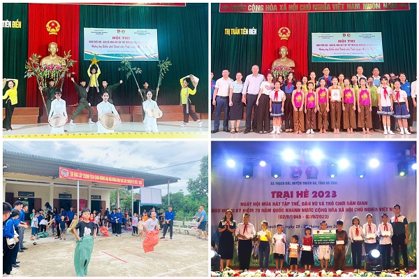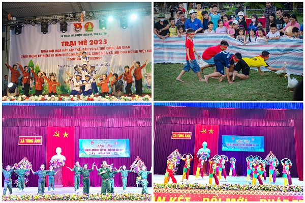Phát huy tinh thần sáng tạo, xung kích, lấy thiếu nhi làm trung tâm để tổ chức các hoạt động, cụ thể hóa những giải pháp, hướng dẫn của Ban Thường vụ Đoàn, Hội đồng Đội tỉnh, các cấp bộ Đoàn, Đội trên địa bàn đã triển khai một cách sáng tạo, có hiệu quả và phù hợp với tình hình thực tiễn tại địa phương, đơn vị. Theo đó, 13/13 Huyện, thị xã, thành phố với 216 xã, phường, thị trấn và gần 1.000 thôn, xóm đã tổ chức cho các em đội viên, thiếu nhi về sinh hoạt hè tập luyện, biểu diễn và tham gia các trò chơi dân gian mang đậm nét văn hóa truyền thống của quê hương, dân tộc. Những trò chơi như nhảy dây, kéo co, bịt mắt bắt dê, đi cà kheo, nhảy bao bố…hay những bài hát ca ngợi về Đảng, về Bác Hồ, Đội TNTP Hồ Chí Minh, về quê hương, đất nước… đã được các anh chị phụ trách thiếu nhi hướng dẫn, tổ chức cho các em tham gia thường xuyên tại các nhà văn hóa cộng đồng “Ngôi nhà trí tuệ”. Âm nhạc và trò chơi không những mang lại cho trẻ thơ một mùa hè ngập tràn niềm vui và tiếng cười mà còn giáo dục cho các em về những giá trị truyền thống tốt đẹp của dân tộc ta, khơi dậy tình yêu quê hương, nguồn cội và khát vọng cống hiến cho các em từ thuở ấu thơ.