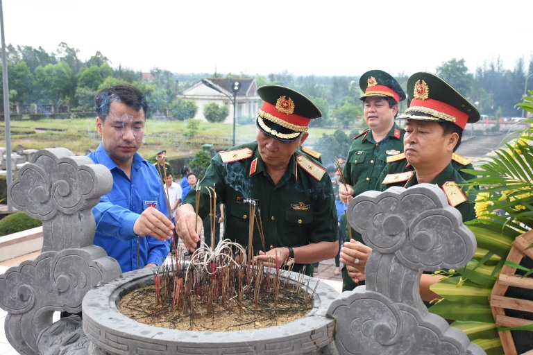 Trước đó, đoàn đã thành kính dâng hoa, dâng hương tưởng niệm tại Nghĩa trang liệt sỹ huyện Lộc Hà.