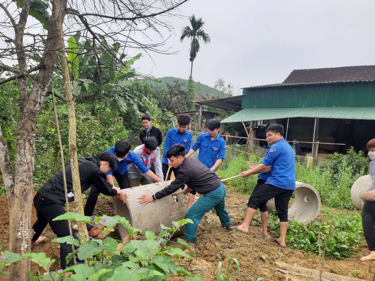 ĐVTN huyện Hương Khê hỗ trợ người dân xây dựng nông thôn mới.